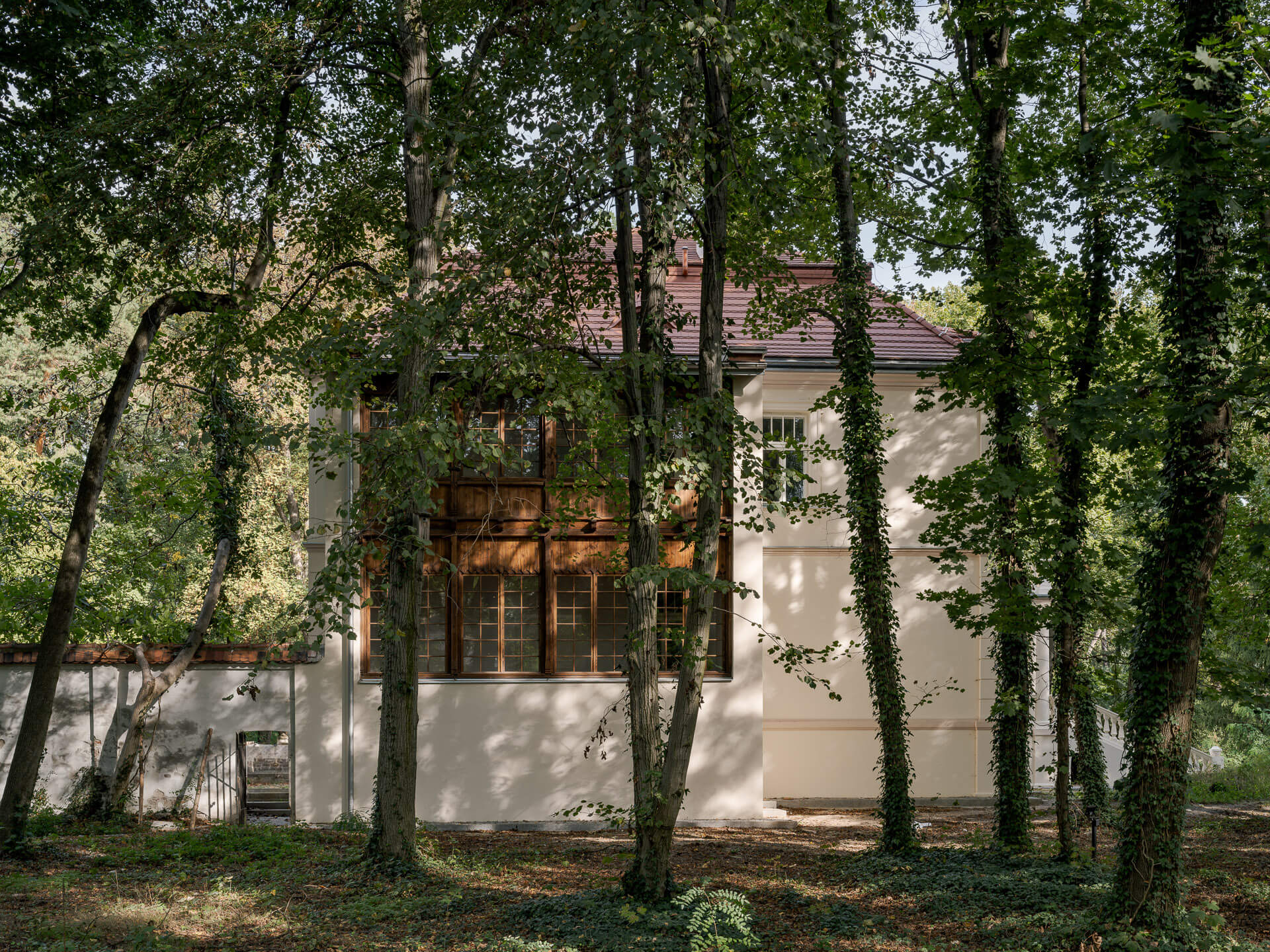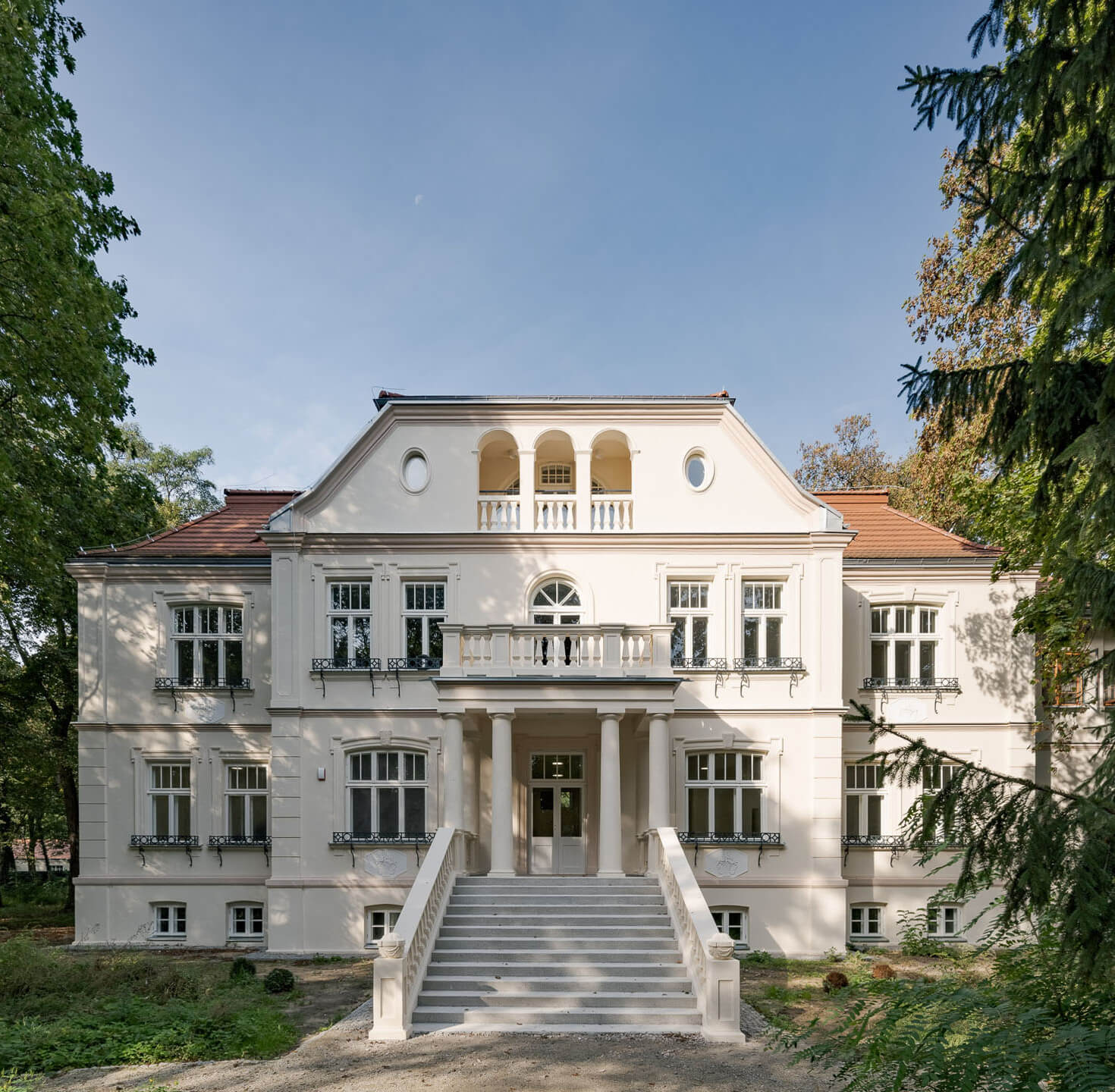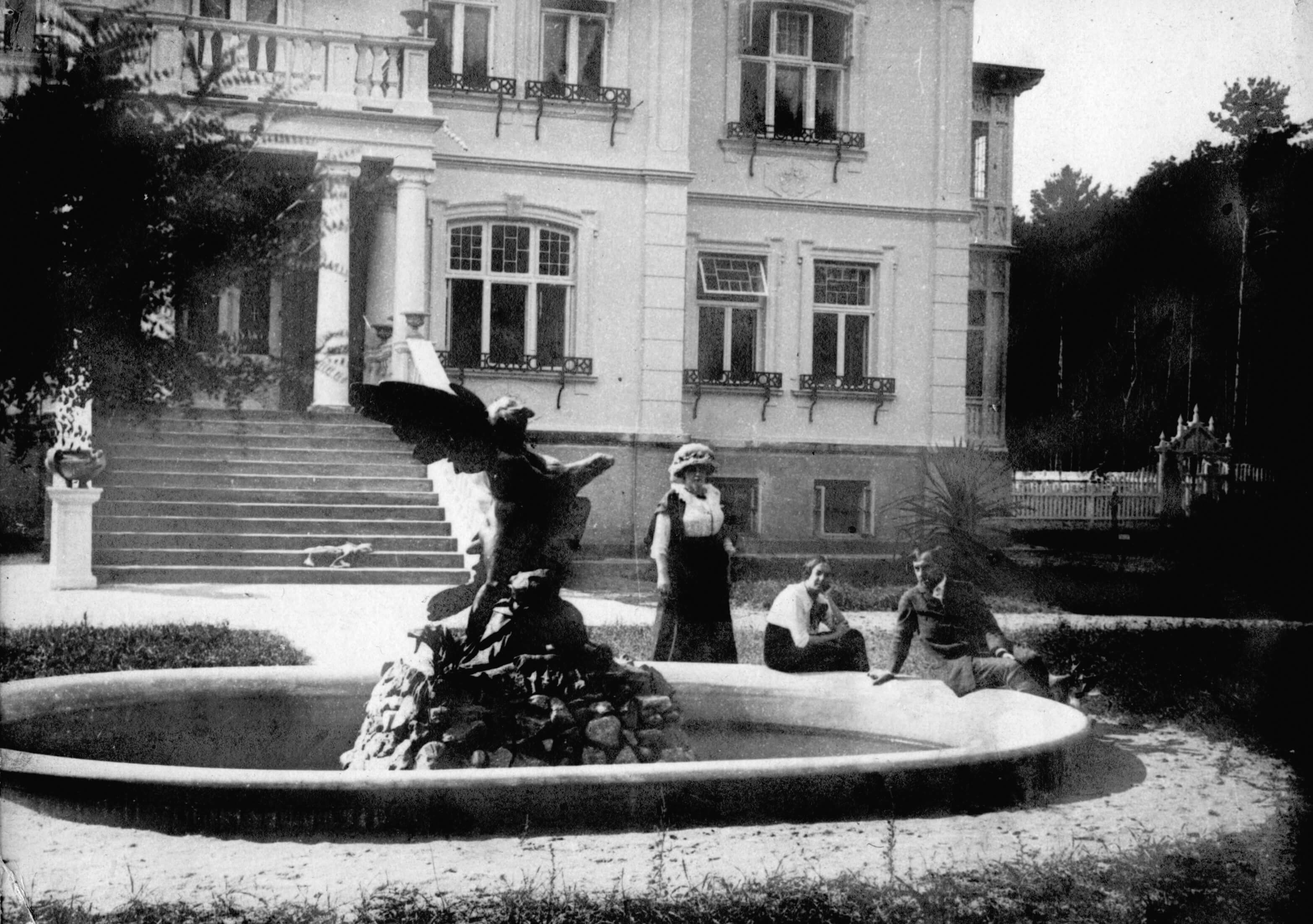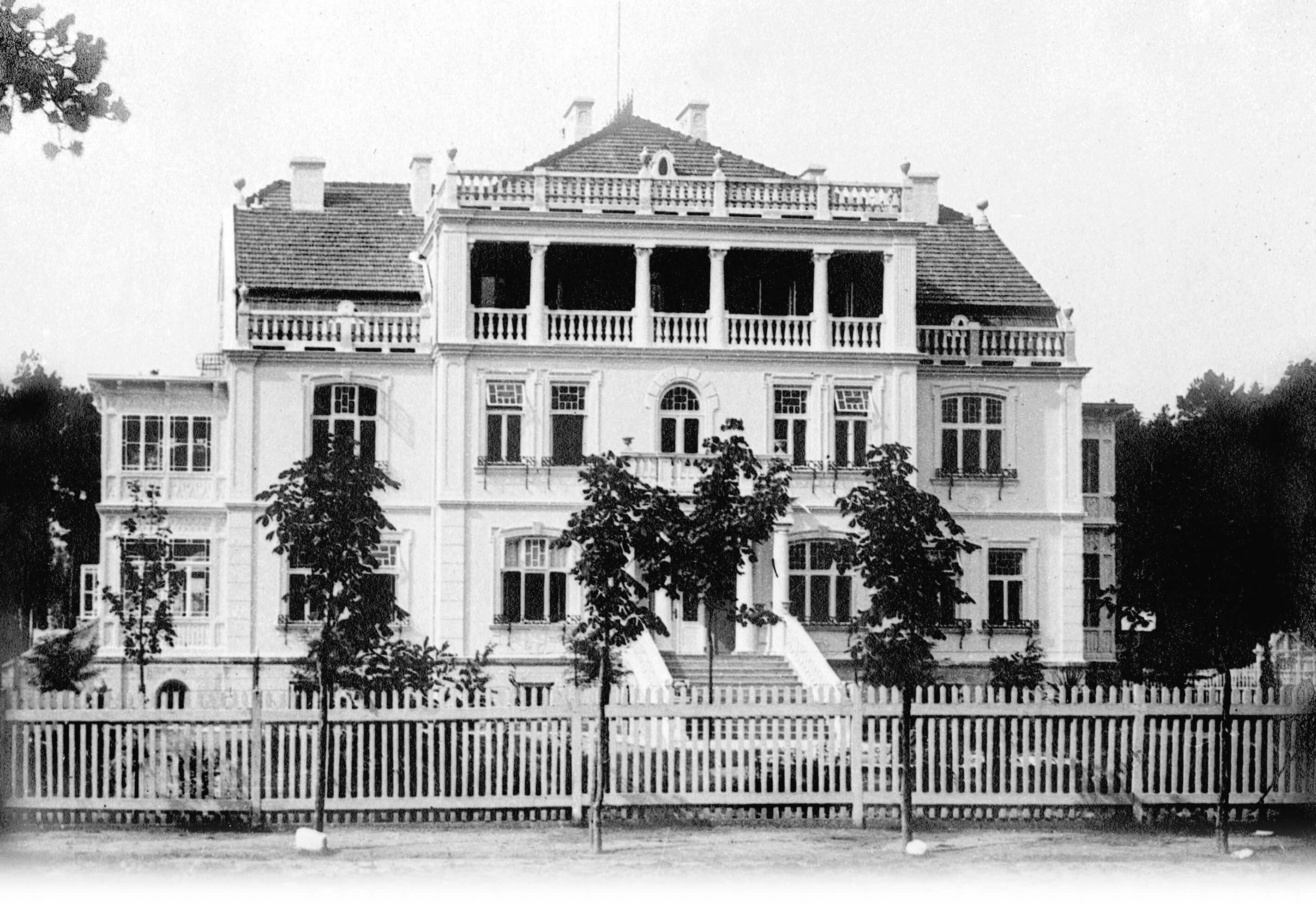 Dwupiętrowy budynek stanął na kilku zakupionych działkach, powstałych po parcelacji terenu Milanówek Las-Górny. Posesja znajdowała się pomiędzy dzisiejszymi ulicami: Spacerową, Krasińskiego, Wojska Polskiego i Mickiewicza. Prace budowlane prowadził Rudzki z Grodziska Mazowieckiego. W dwupiętrowej formie budynek przetrwał do roku 1915. Ostatnia kondygnacja budynku spłonęła w tym czasie od wybuchu szrapnela. Odbudowy w 1920 r. ponownie podjął się Rufin Morozowicz, jednakże tym razem powstał budynek jednopiętrowy.